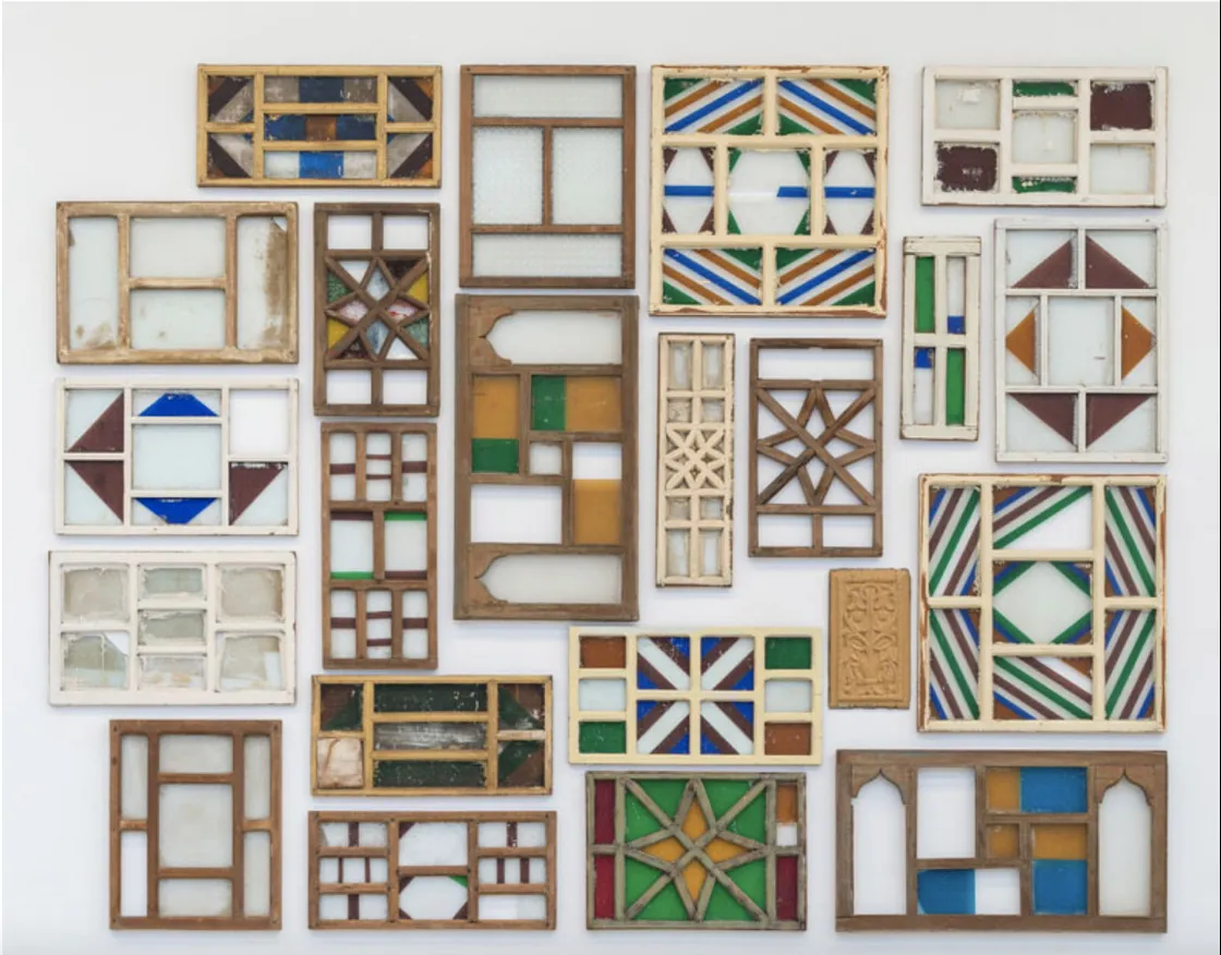 Collected from demolished buildings in Mecca, these colorful panes of glass carry the memory of a city disappearing in plain sight. Harvested from structures erased by redevelopment, they preserve fragments of an older urban fabric and a more intimate way of life. In Mater’s hands, they become more than found objects. They become witnesses. Each pane holds the trace of homes, neighborhoods, and everyday histories that once stood behind the monumental image of the holy city.