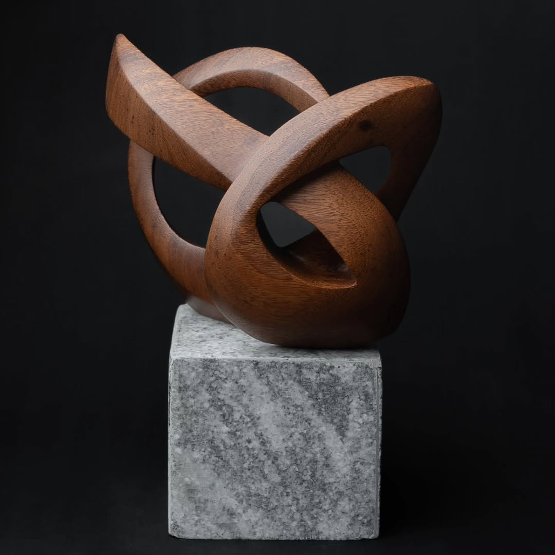 Stone brings a different kind of silence. Wood can feel intimate and alive, warm with grain. Stone feels eternal, public, uncompromising. Yet the emotional throughline remains. His forms still aim to carry feeling, spirituality, and connection, just with more weight and more permanence.