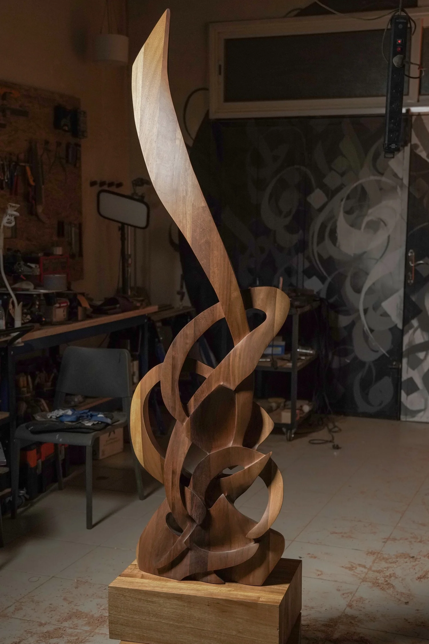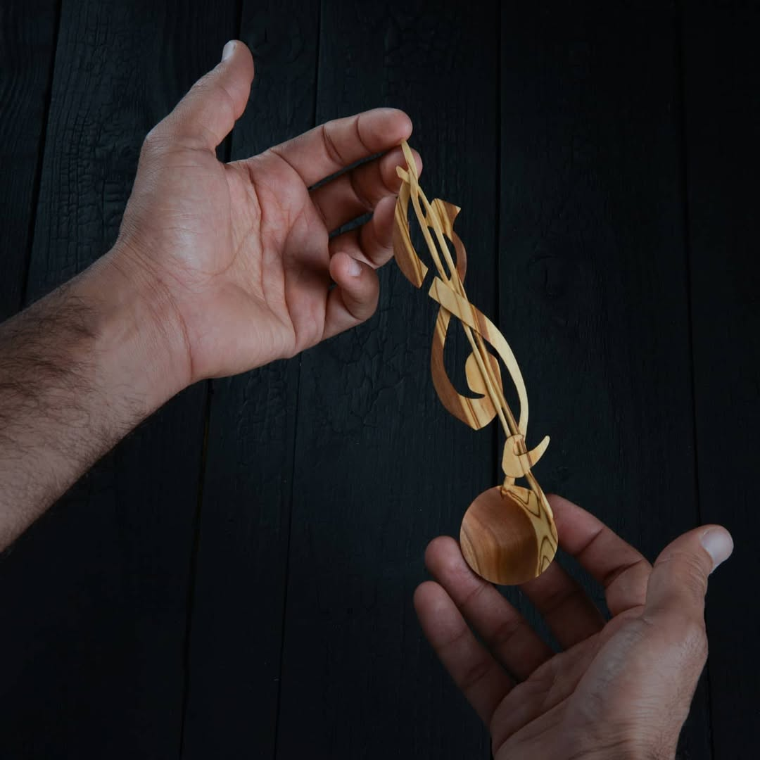 That way of thinking led him to carve a spoon, one of the simplest and most intimate tools of nourishment. Through that act, he discovered his relationship with the knife, and carving quickly became a passion. Wood, for him, offered resistance, warmth, and permanence all at once. It allowed the Arabic letter to move beyond the surface and into something that could be held, carried, and lived with. From that point on, wood became central to his practice, not as a medium of tradition, but as a material capable of holding emotion, spirituality, and connection.