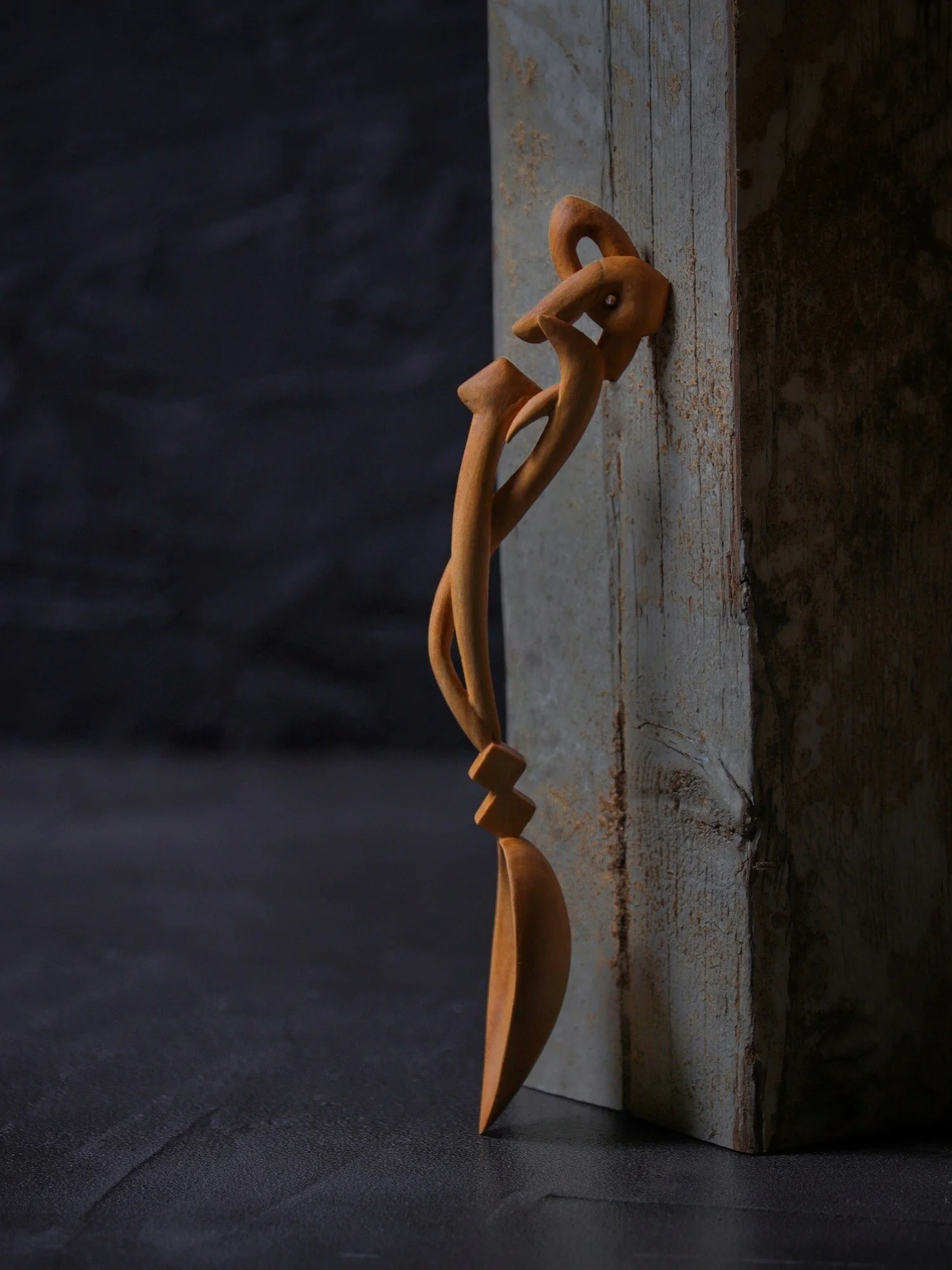 - Haa’ Necklace (2024), knife-carved cherry wood