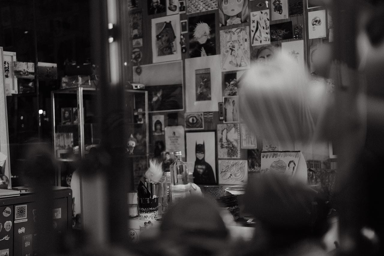 A: The atmosphere is relaxed, almost effortless. People come and give each other art. Someone leaves with something new. Someone else leaves lighter. We practice community, not competition.