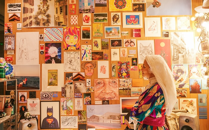 A: Some I’ve collected myself, and others are gifts. People bring me pieces, small characters, cars, prints, and they become part of the space. I like the energy of different hands and histories around me. It reminds me to stay humble and connected.