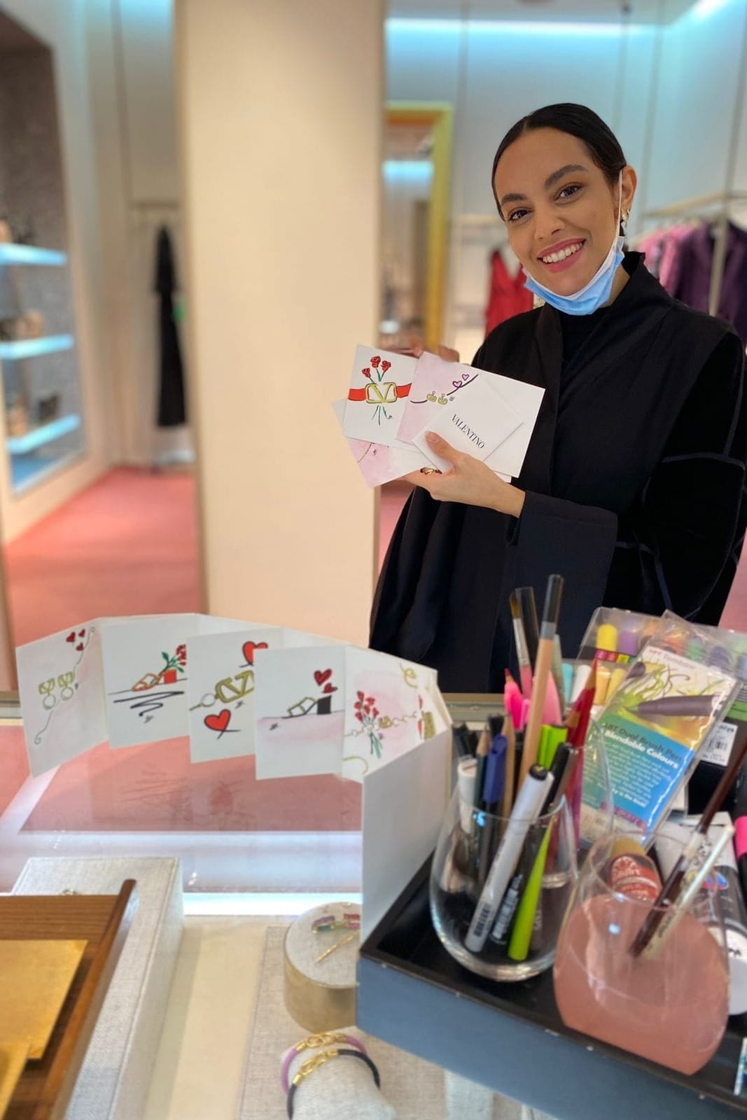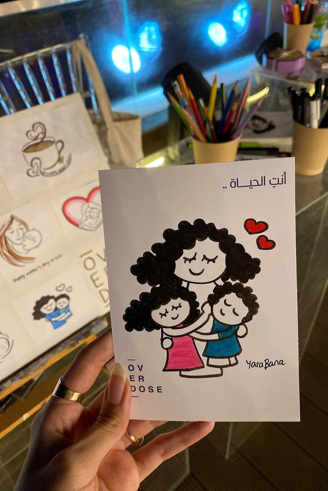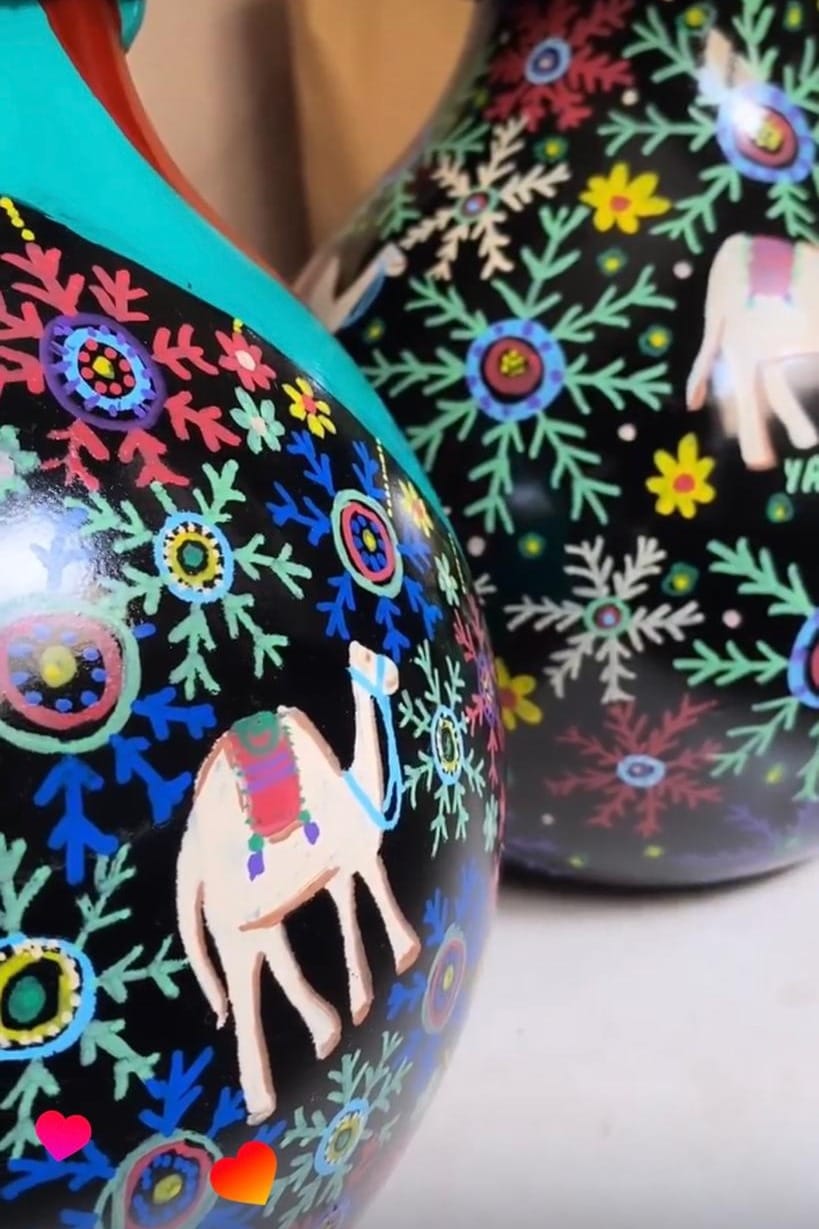Yara: Valentino invited me for a live art event and collection pop-up in Jeddah. I also worked with Overdose Coffee on a Mother’s Day project, and with COYA on their 25th anniversary, mixing Peruvian and Saudi symbols. I painted llamas and camels on pots that still live in the space. I have also worked with the Ministry of Culture and Silvana, a publishing house.