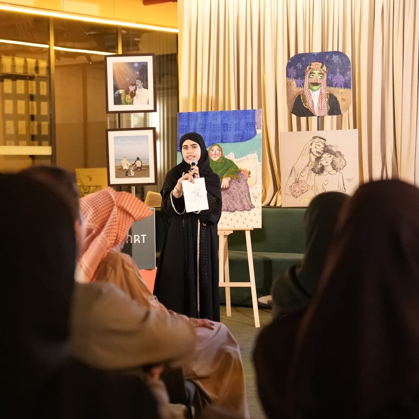 As part of its monthly series, Arbaaa Marketing, through its platform KSA Art, hosted a session led by visual artist Aseel Al Yaagoub. The event invited artists and art lovers to explore the connection between identity, environment, and creative expression. Known for her bright, heritage‑infused portraits, Aseel brought a deeply personal lens to the conversation.