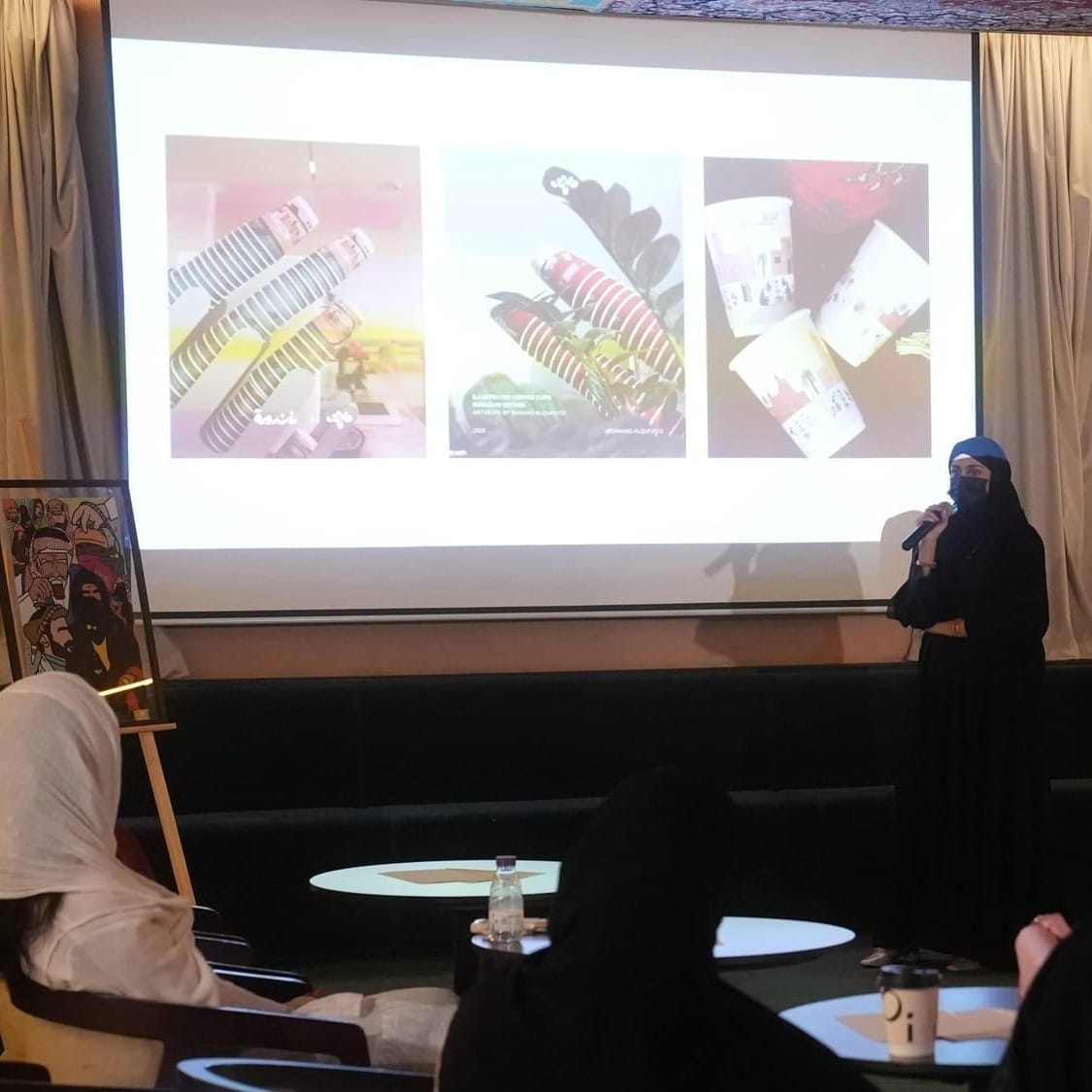 Shahad opened the evening by walking the audience through her creative origins, tracing the evolution from her early interest in art to her current professional practice. She provided a behind-the-scenes look at her real-world experience, specifically discussing her major brand deals and the logistics of professional commissions.
