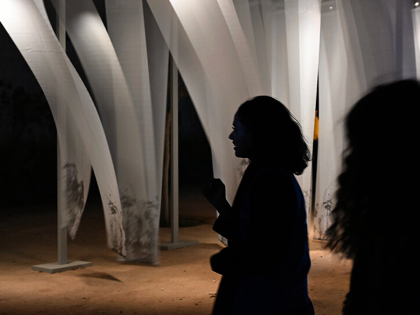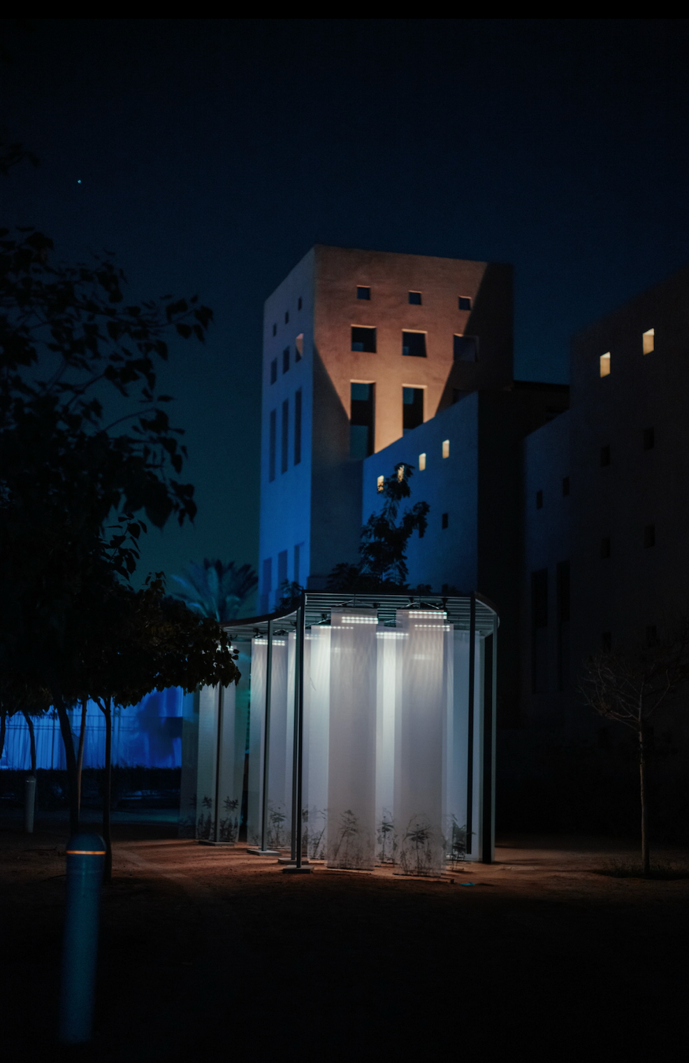A single moving light guides the experience, asking the viewer to follow illumination as it drifts across surfaces. Shadows multiply gently: the fabric’s outline, the body’s trace, the slow passing of time itself. Installed within the stillness of the King Abdulaziz Historical Center for Noor Al Riyadh 2025, the work offers a space for pause and inward attention. It holds healing and growth in suspension, allowing reflection to gather softly before dissolving again into light.