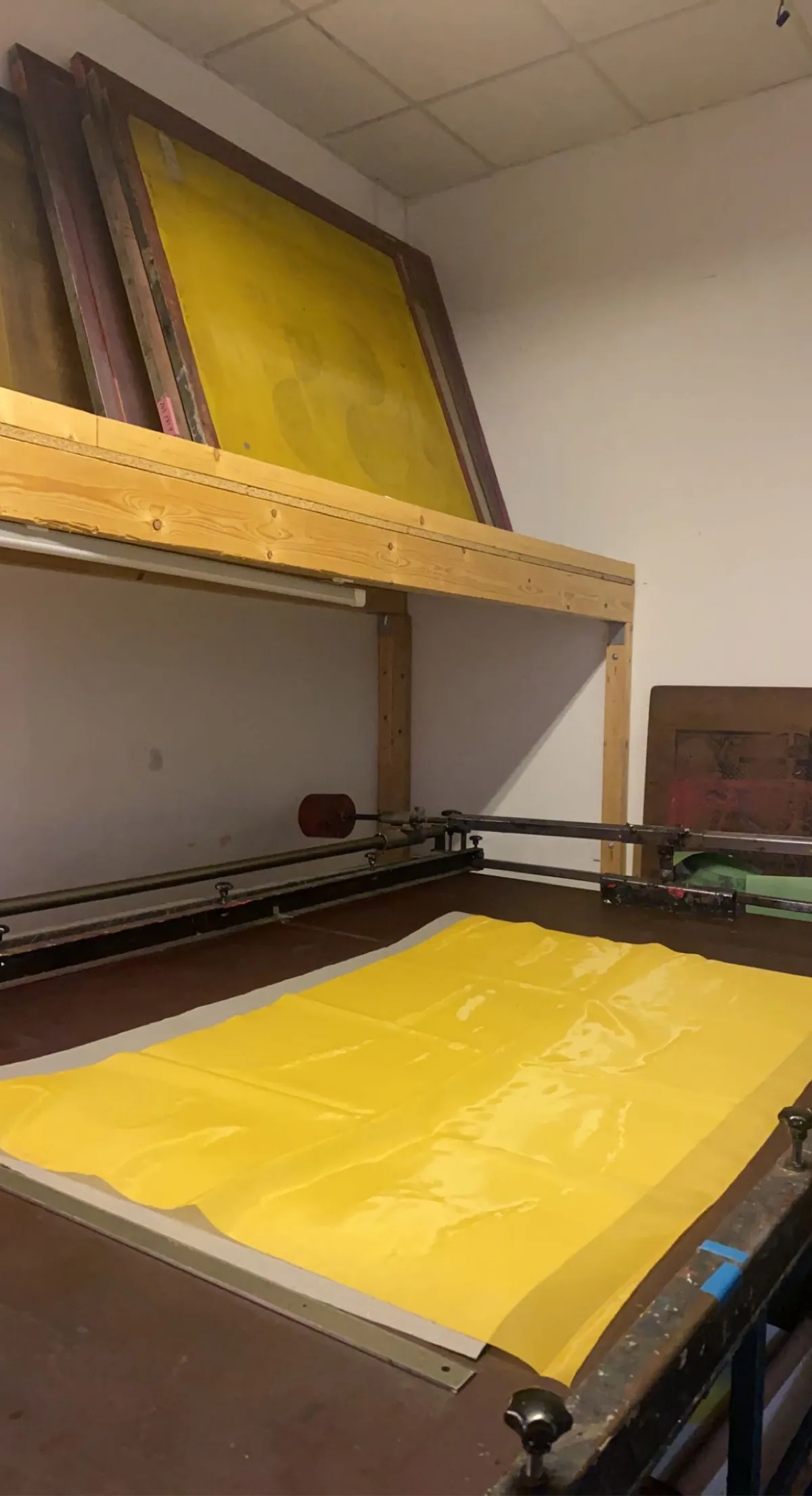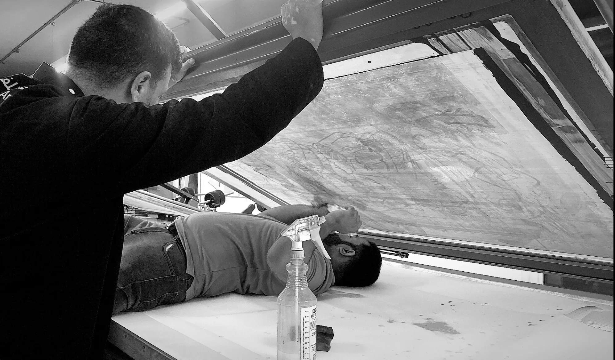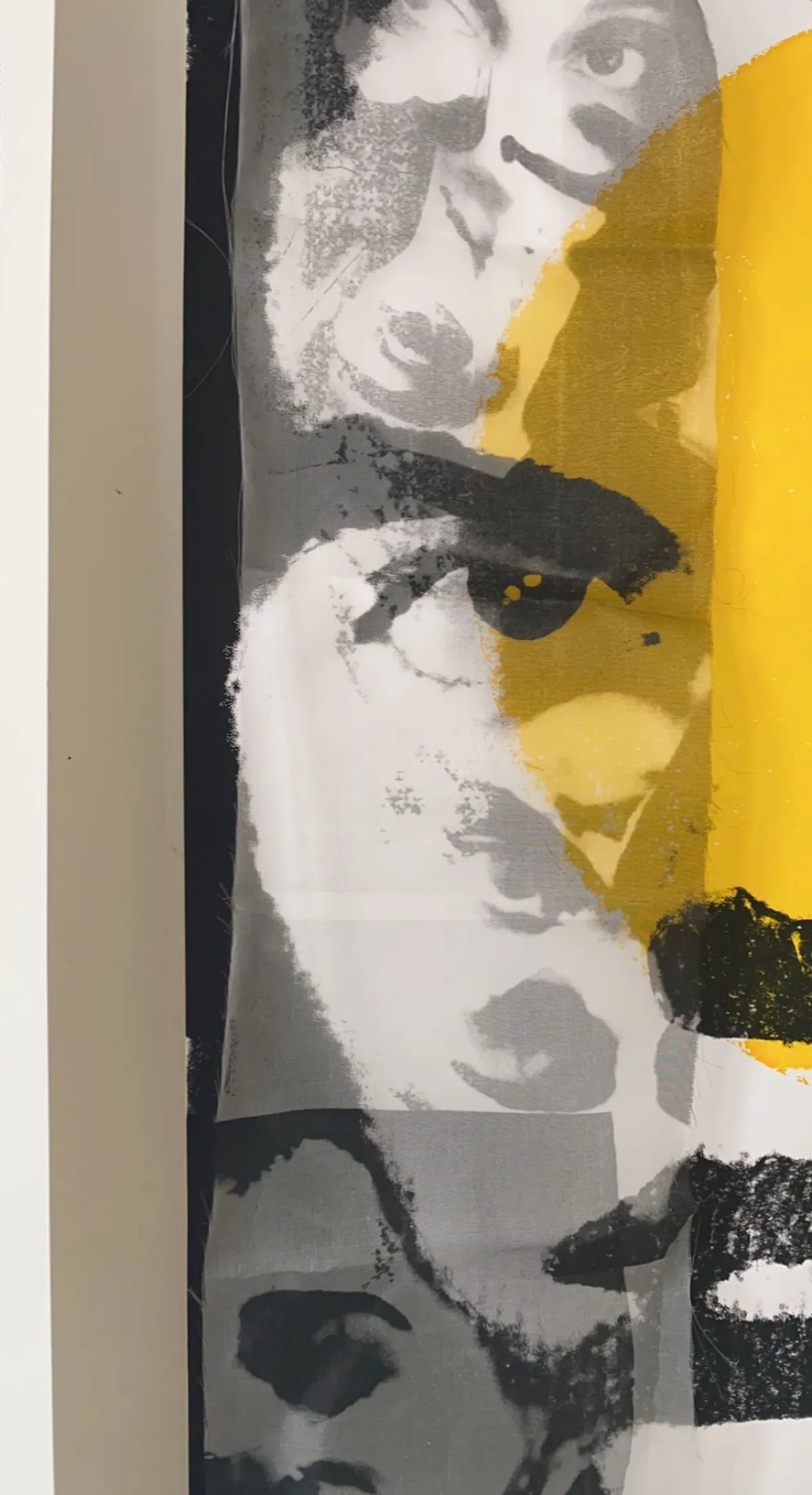In Between focuses on the body as fragment and signal. Silkscreen printed on yellow mesh, it enlarges standing body forms while removing the head, shifting attention to posture, movement, and the space between what we assume and what we actually perceive.