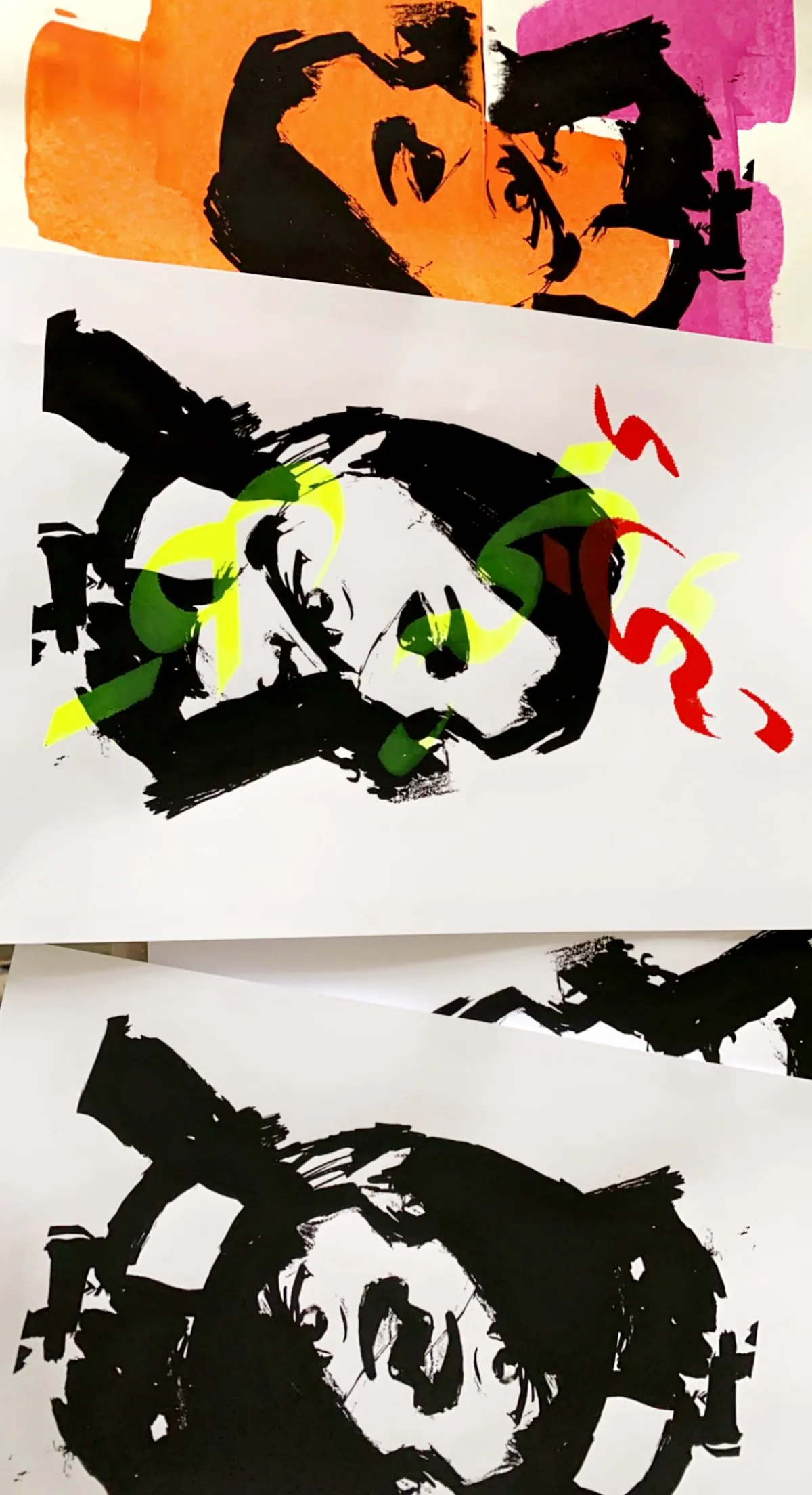 Created as two color screen prints on paper in Berlin, From Many explores identity through hybridity. Facial features merge into a shared face, shifting the viewer away from the idea of a single fixed self and toward something collective and layered.