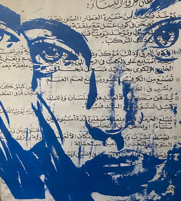 This 2026 work marks a striking material shift: makeup and kohl used as print on mesh at monumental scale. The choice is intimate and culturally resonant. Kohl belongs to rituals of beauty, protection, and selfhood, and in Fatma Abdulhadi’s hands it becomes a register of presence.