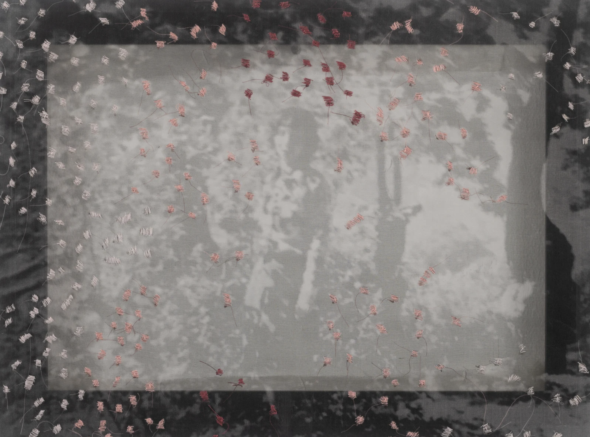 This piece features an image of her maternal grandmother in Syria, delicately embroidered with jasmine flowers. The work encapsulates themes of memory, heritage, and the passage of time, highlighting the intimate connection between personal history and cultural identity.
