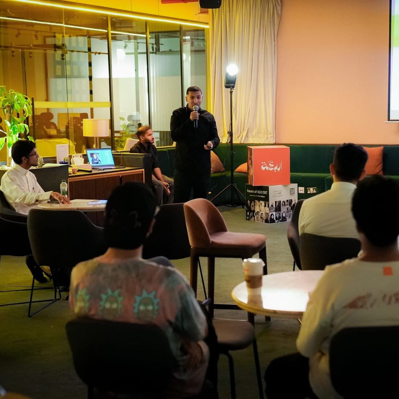 You can expect a mix of Arabic and English, an elegant yet relaxed setting, and a shared respect for the creative process. The team pays attention to details that make introductions feel natural and conversations feel generous. The result is a room that is both social and serious about culture.