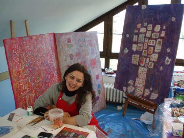 Hejazi’s practice extends beyond the canvas through exhibitions and cultural programs, from Art Jeddah to international contemporary calligraphy contexts such as initiatives at the Islamic Arts Museum Malaysia, reflecting how her work bridges abstraction, language-based art, and the evolving role of Arabic script today. Yet her influence is equally rooted in education: she has long taught children and supported teacher development through training and mentorship, creating work that guides rather than lectures.