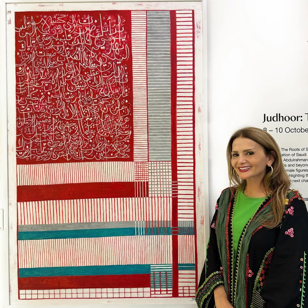 Today, she is an award-winning artist with over eight solo exhibitions and a track record of international engagements in exhibitions and symposiums across Saudi Arabia, the UAE, Europe, and beyond.