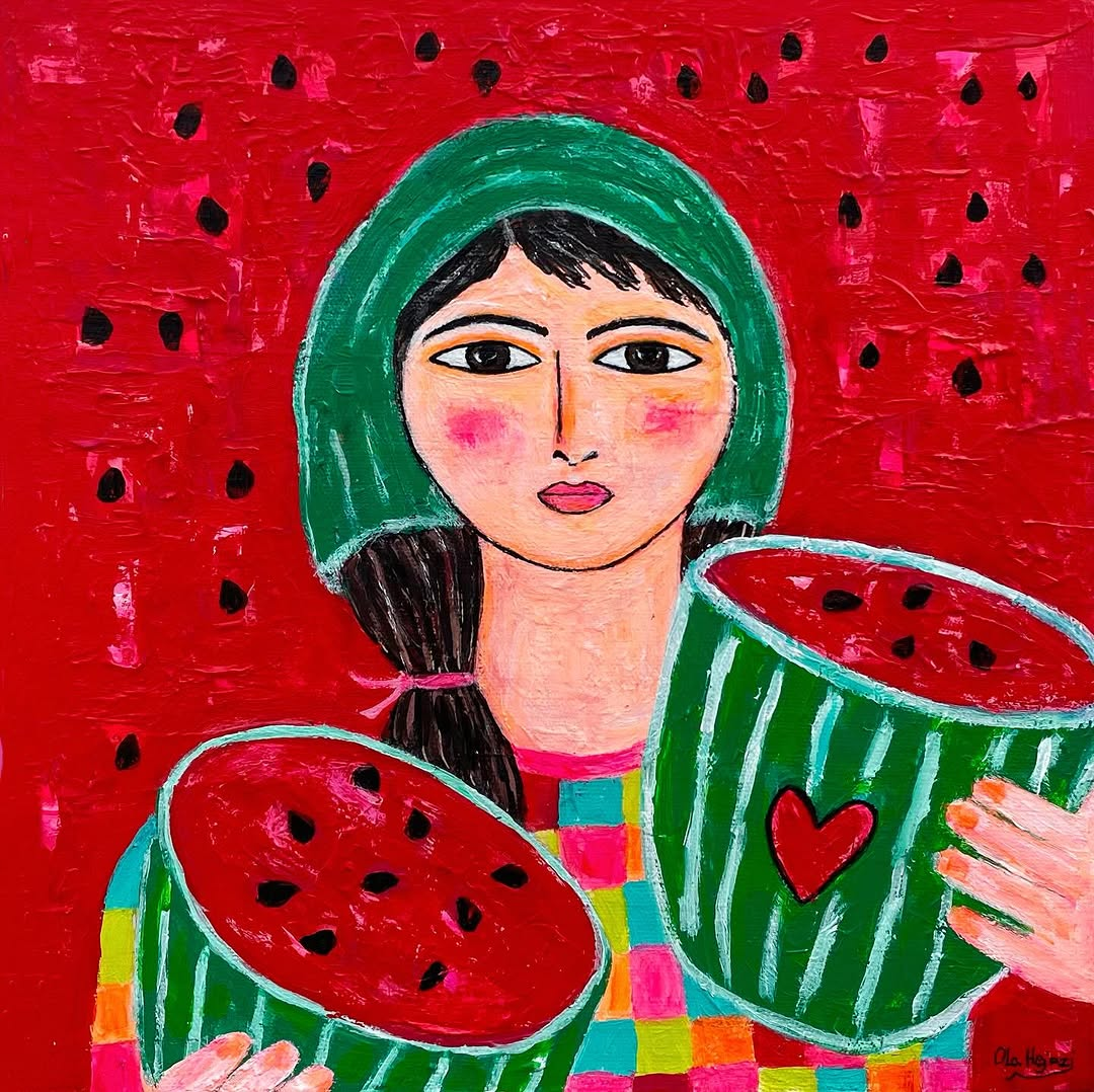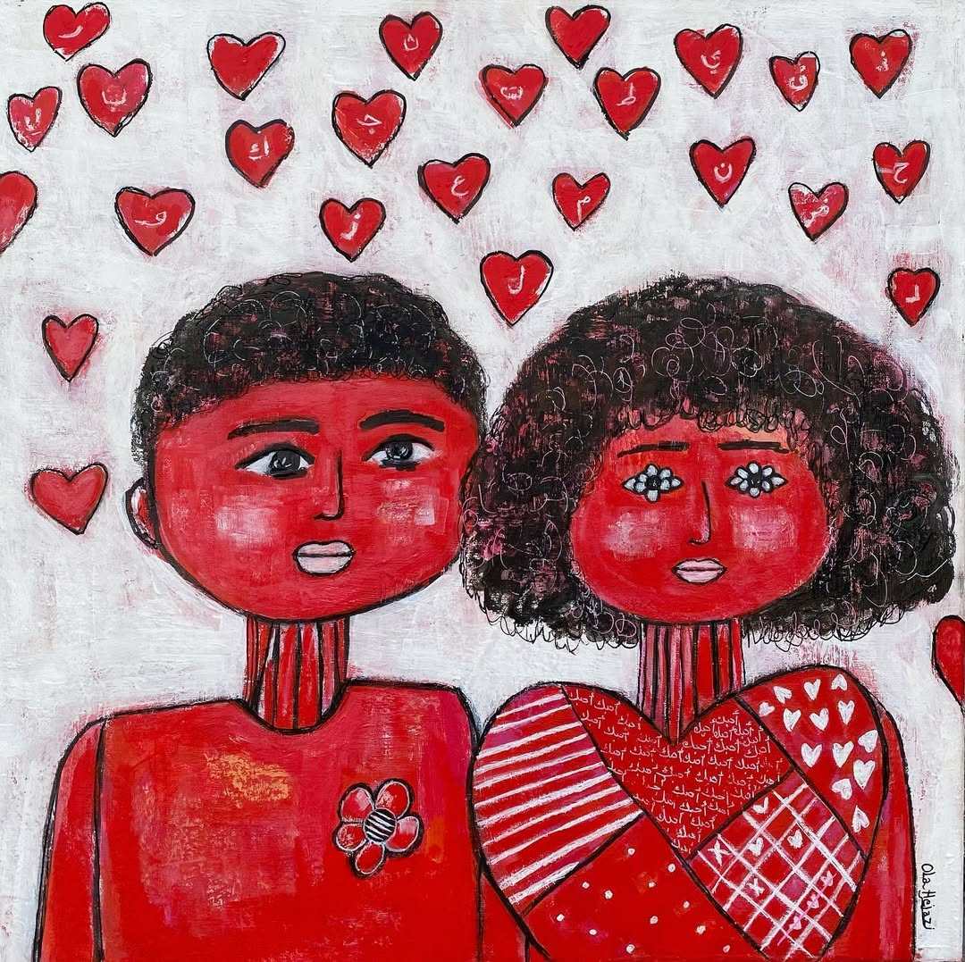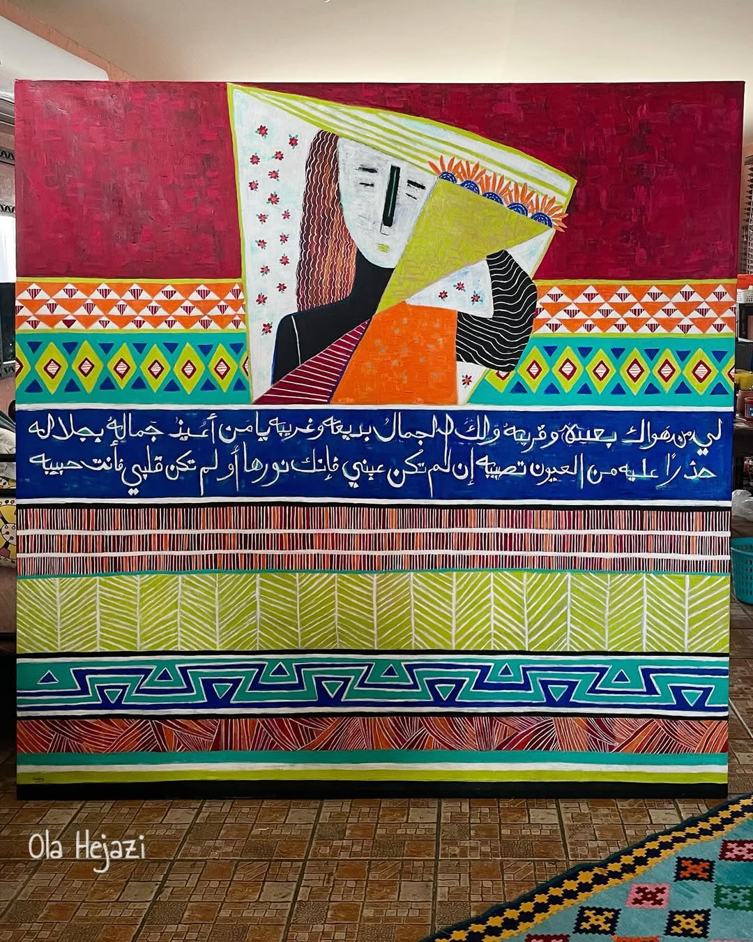 In Jeddah, Ola A Hejazi builds paintings that feel like rooms you enter slowly. Not because they are quiet, but because they are layered. A letter becomes a figure. Ink becomes weather. A childhood object becomes an emotional landmark you did not know you missed.