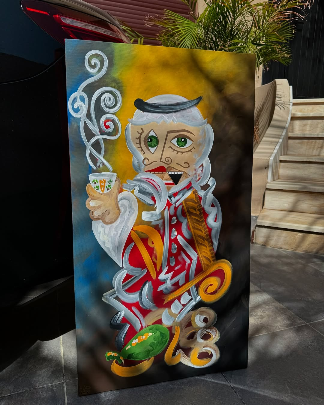 Picasso is one of Alkheriji’s most openly acknowledged influences, especially in the way cubism opened up new possibilities for structure and perspective. But his influences stretch beyond that single reference. Surrealism also plays a role in the atmosphere of his work, as do artists whose bold imagery and stylized forms shaped his early imagination.