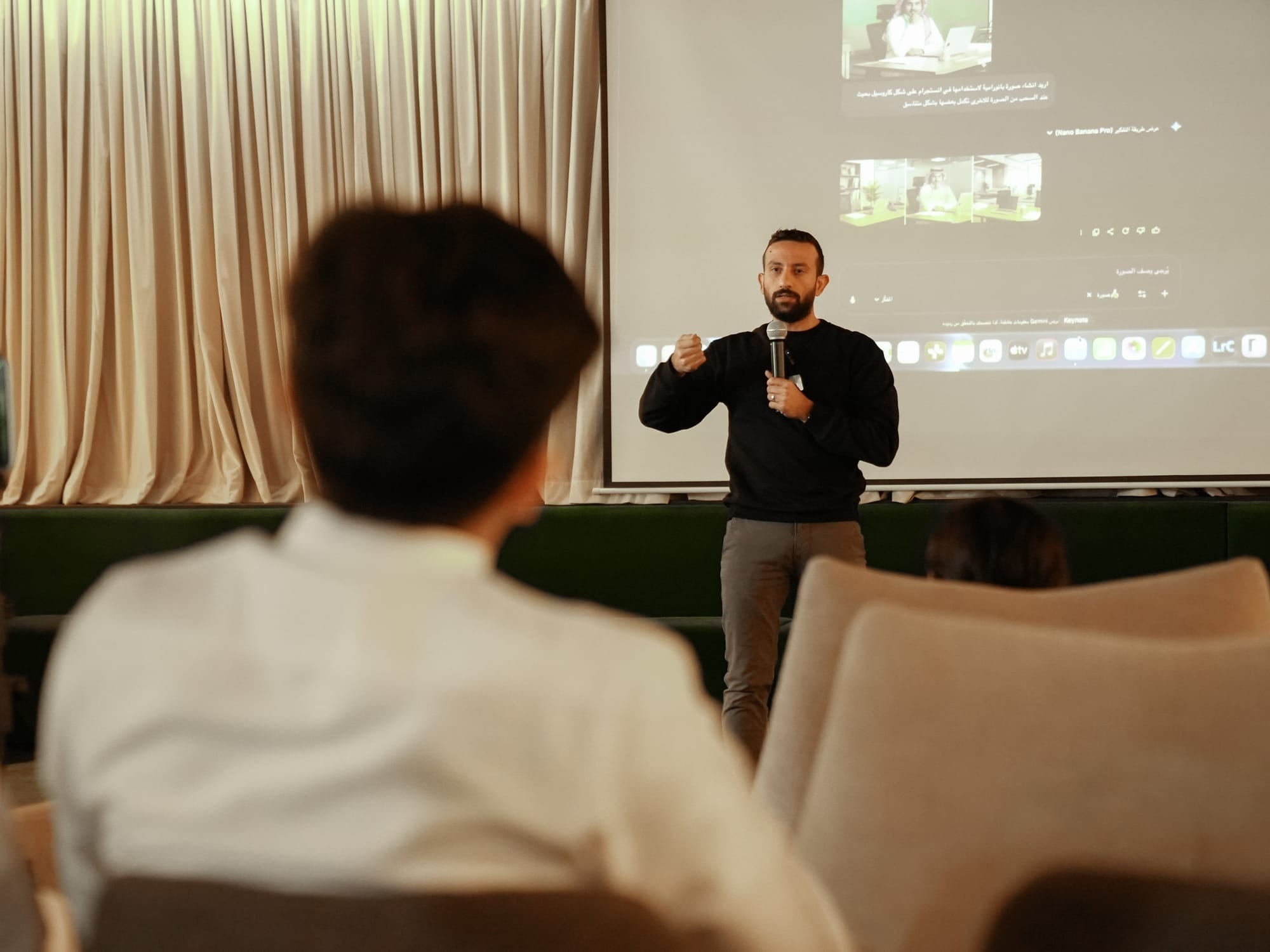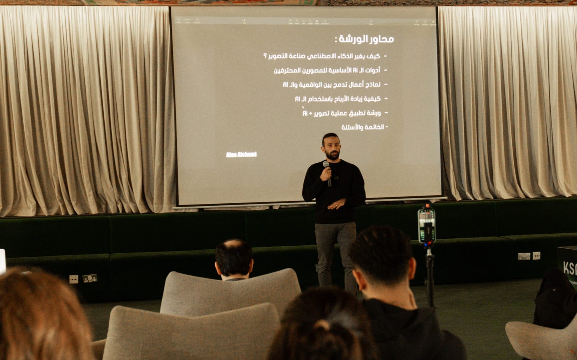 Leading the session was Alaa Alchami, a commercial photographer and co-founder of ArabsStock and Click it Studio. With extensive industry experience, Alchami guided attendees through both conceptual and practical dimensions of integrating AI into a photography practice.