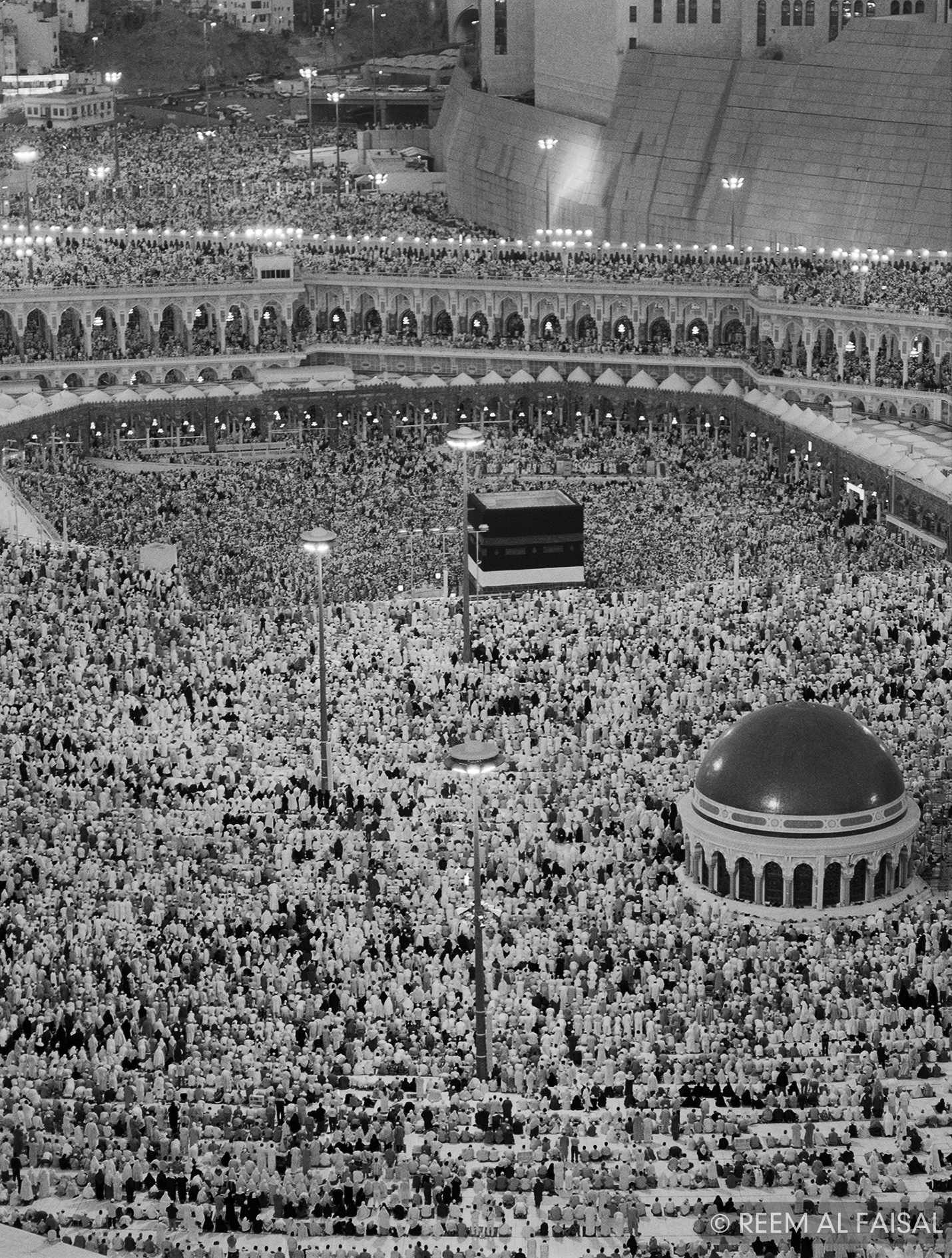 Reem Al-Faisal would go on to become one of the first woman to document the sacred pilgrimage of Hajj. Her work in Makkah and Madinah captured more than architectural grandeur; it unveiled the choreography of faith. Pilgrims in motion, veils in wind, shadows cast by minarets, each image reflects not just a ritual, but an atmosphere of spiritual alignment.