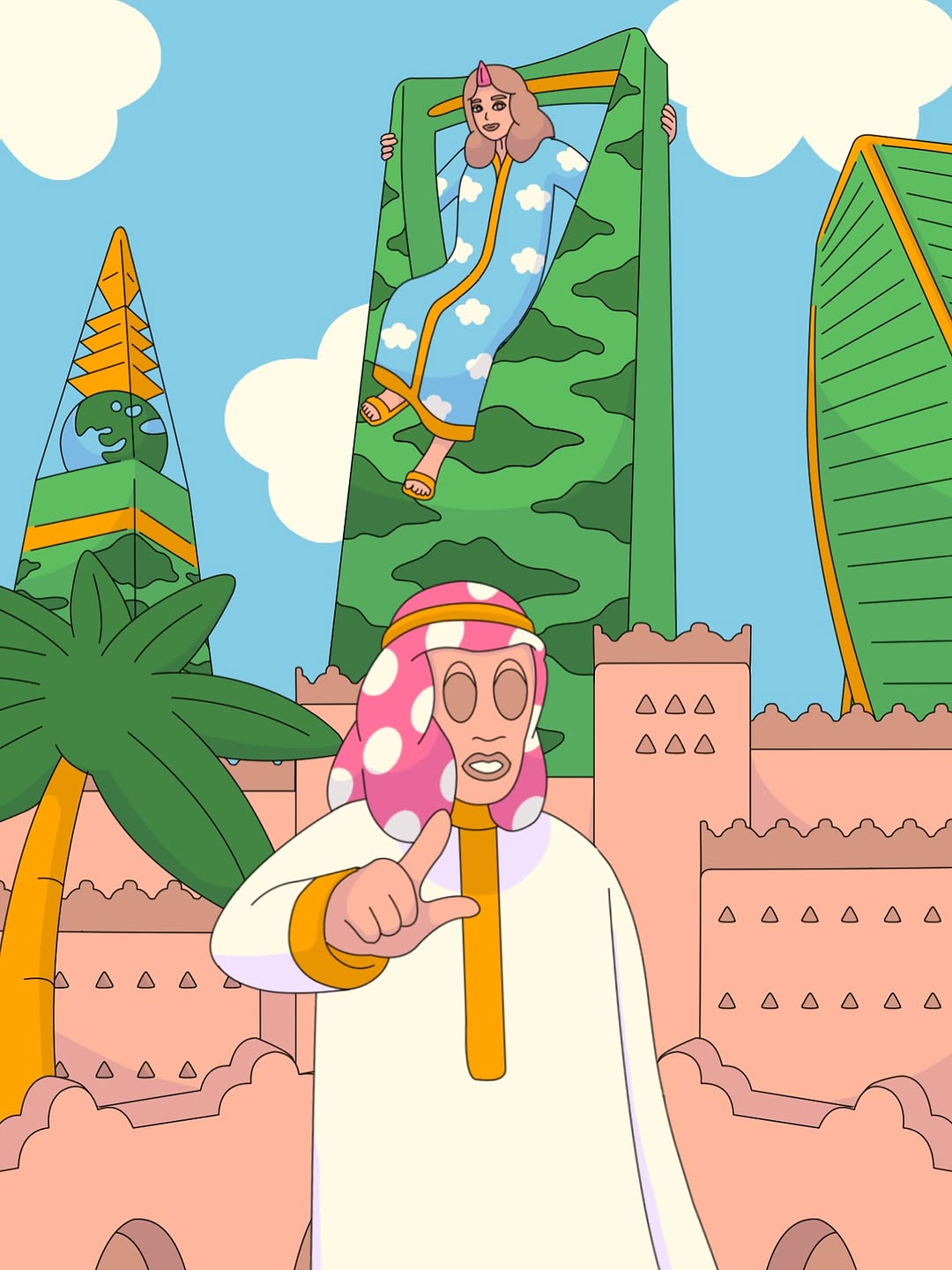 In the fast-moving current of Saudi culture, Rex Chouk has become a north star for a new kind of visual language. His world is candy-toned and mischievous, yet it carries a quiet weight. He can make a city feel like a character and a character feel like a city. What looks like play is often a mirror.