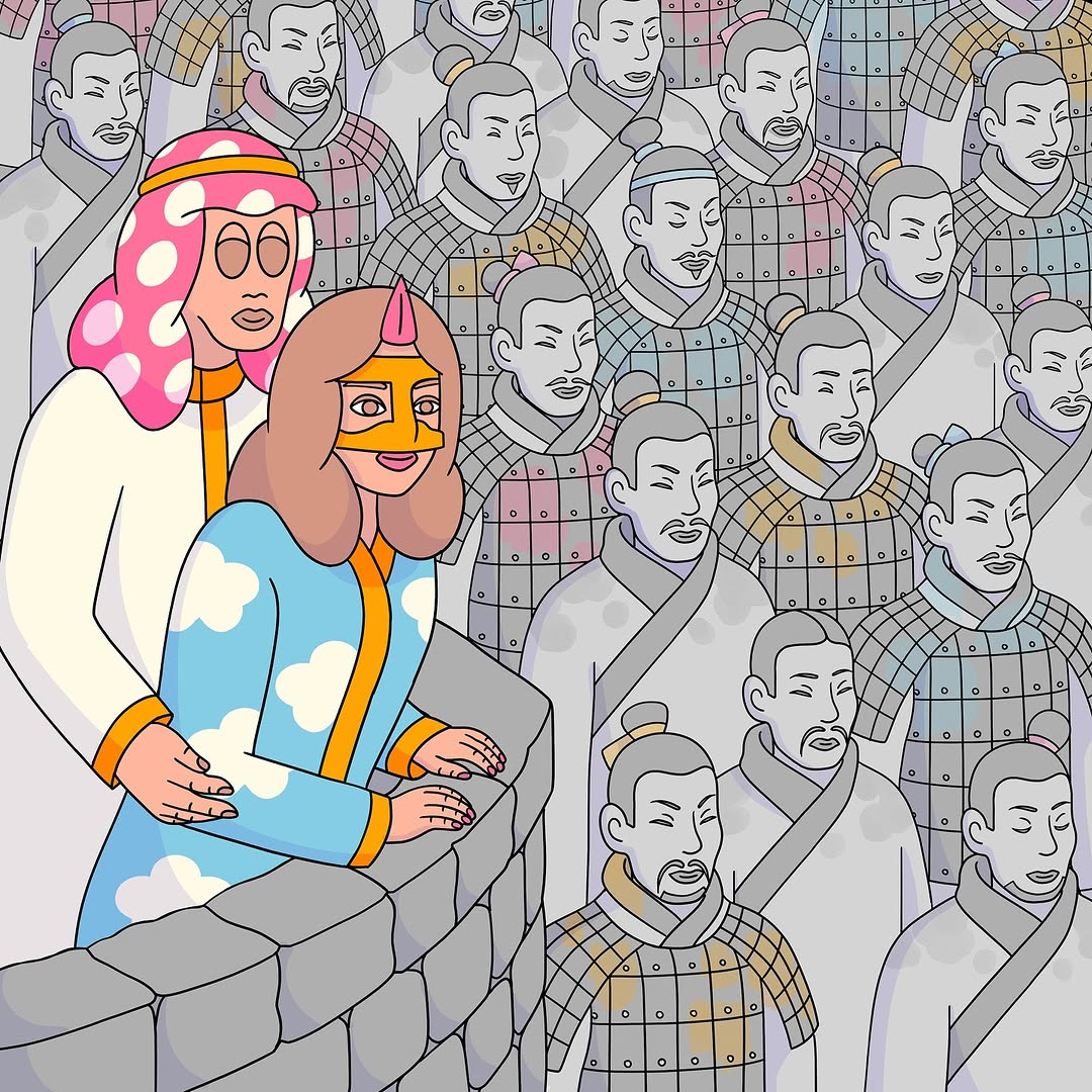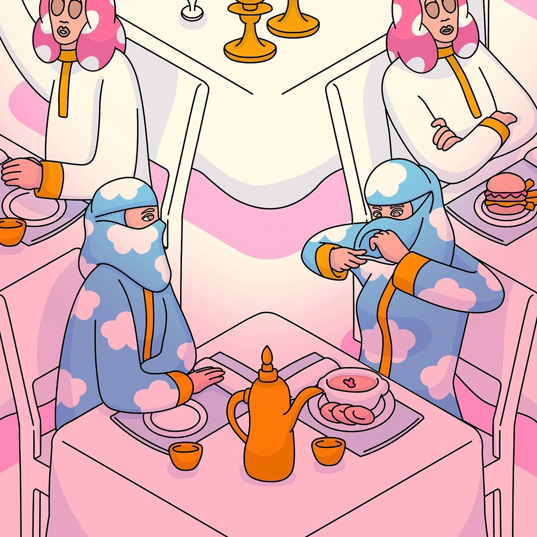 Rex Chouk turns the rituals of Gulf life into a playful study of courtship, leisure, and low key vibes, then lets satire do the quiet work of critique. His visual language is crisp and symbolic, a cast of archetypes and cues that invite you in, building a spectacle from stories that slip between the provocative and the beautifully ordinary.