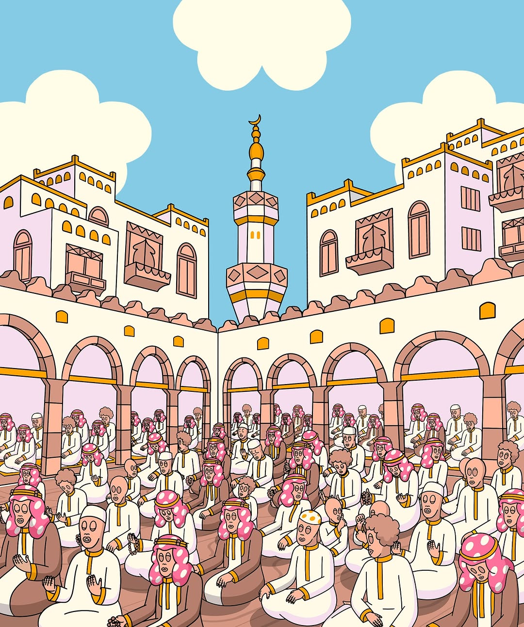 His masked persona keeps the focus where he wants it. On the work. On the characters. On the small details that wink at anyone who has ever navigated a Khaleeji childhood, a Gulf adolescence, and a global adulthood.